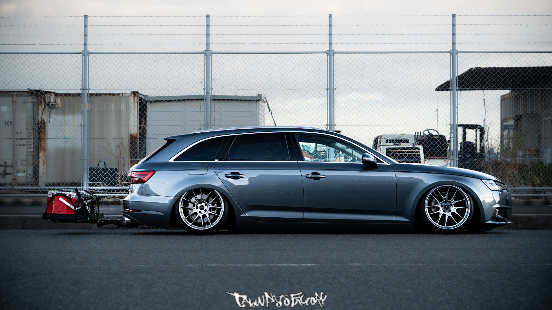 またフロントにMAXTONのリップをサイドにもMAXTONのサイドスプリッター、リアにはAudi×quattroという組み合わせでアウトドアもいけるんだぞを連想させるため、ヒッチメンバーとヒッチカーゴを導入。